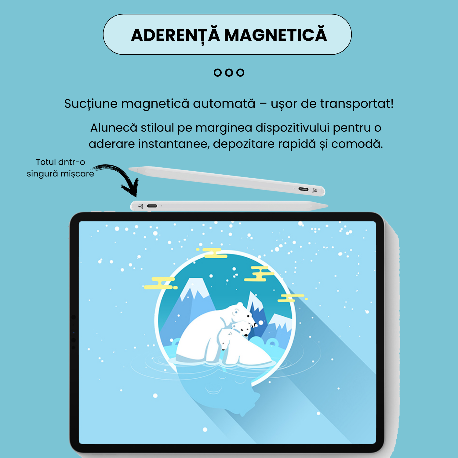 - Sistem Magnetic de Aderare: Designul inovativ permite fixarea stiloului pe dispozitive sau suporturi metalice, astfel incat sa-l poti pastra mereu la indemana. Aceasta caracteristica adauga un plus de convenienta si portabilitate.